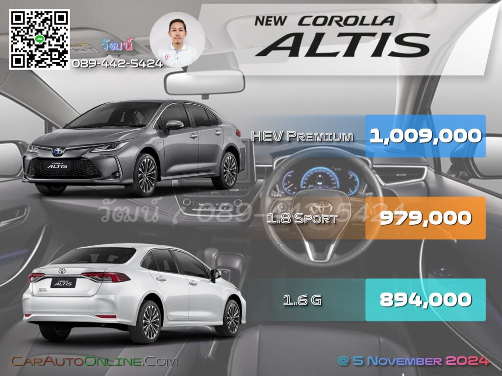 รถยนต์โตโยต้า โคโรลล่า อัลติส 2024 ราคา ณ 5 พฤศจิกายน 2567 มีจุดเด่นดังนี้