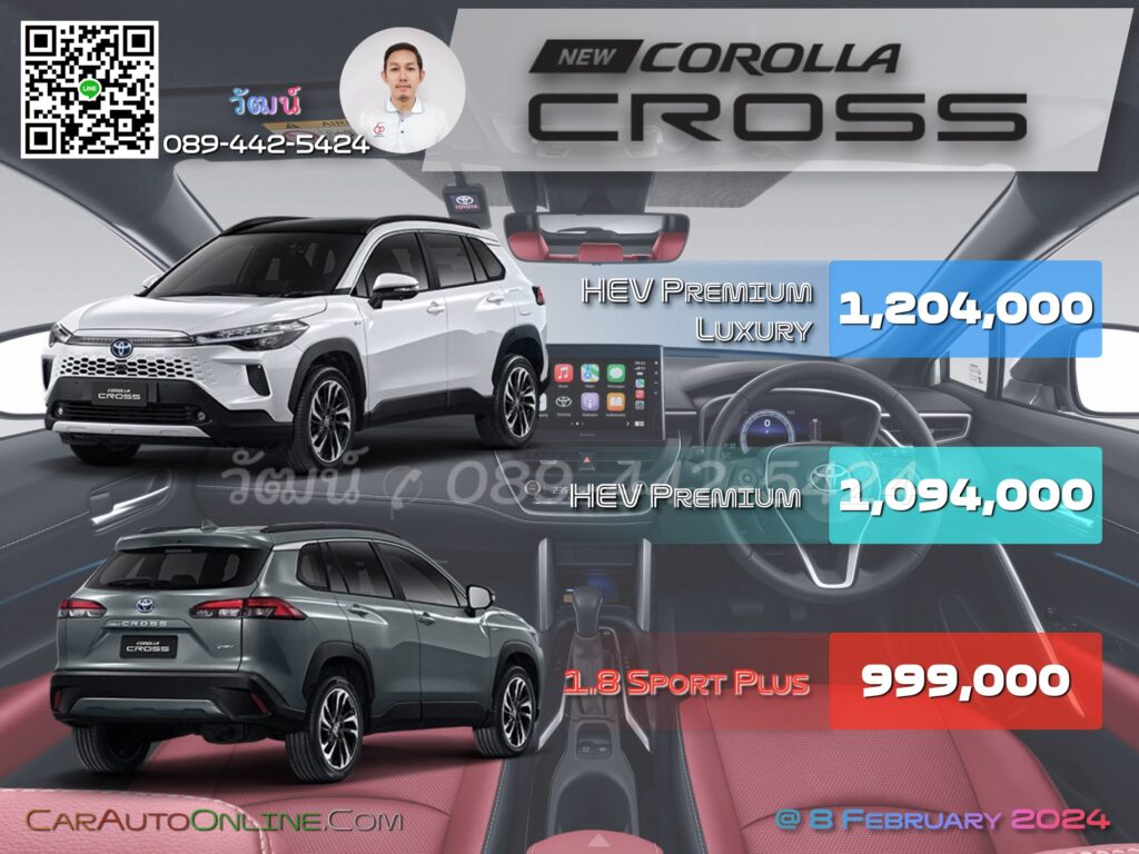 โตโยต้า โคโรลล่า ครอส 2024 ทั้งรุ่นไฮบริด และรุ่นเบนซินล้วน ราคา ณ 8 กุมภาพันธ์ 2567 มีการปรับปรุงดังนี้