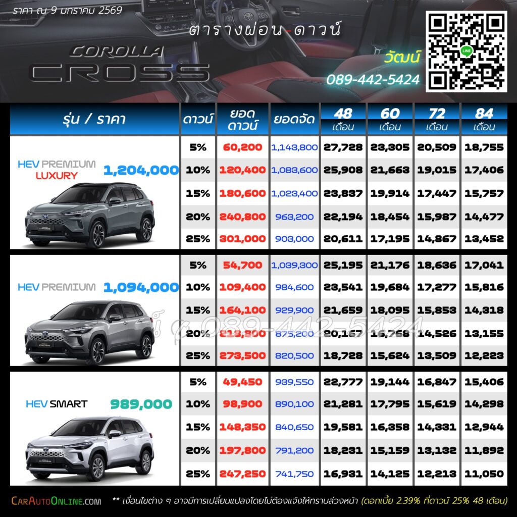ตารางผ่อนดาวน์ Corolla CROSS 2026
