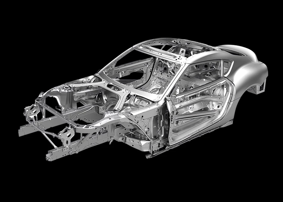 LIGHTWEIGHT & HIGH RIGIDITY BODY โครงสร้างตัวถังแข็งแกร่งสูง ทนต่อการบิดตัว แต่มีน้ำหนักเบา จุดศูนย์ถ่วงต่ำ ฐานล้อกว้าง กระจายน้ำหนักหน้า-หลัง แบบ 50:50