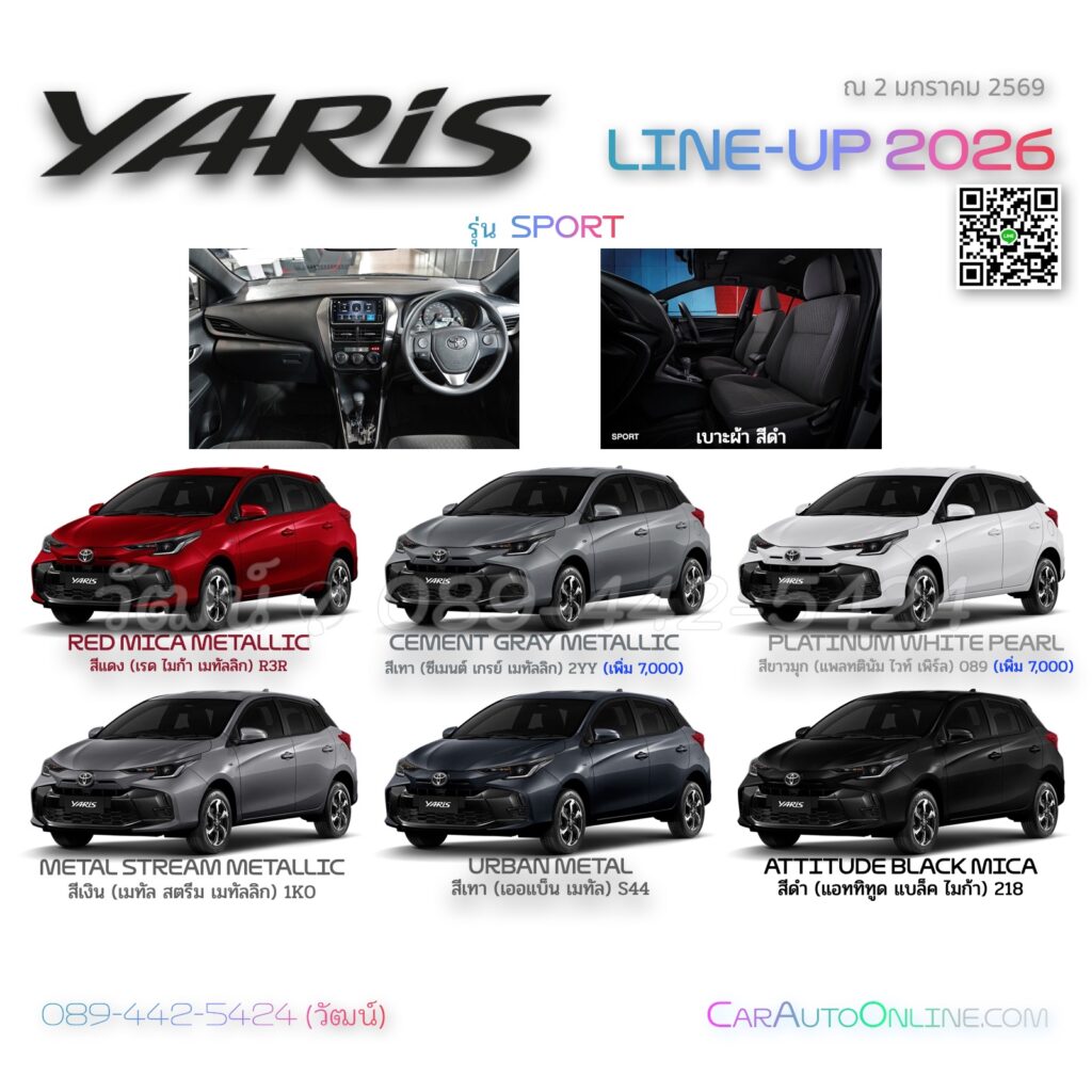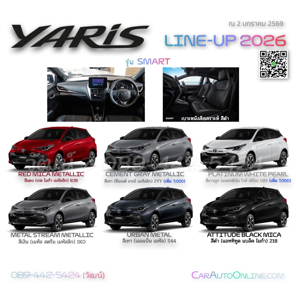 Toyota YARIS  2026 มีให้เลือก 7 สี  **หลังคาดำ เพิ่ม 5,000 (ตามเกรดรุ่น)