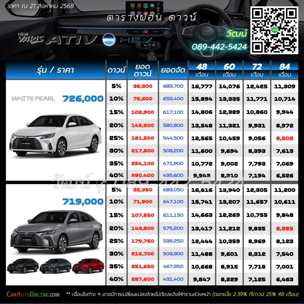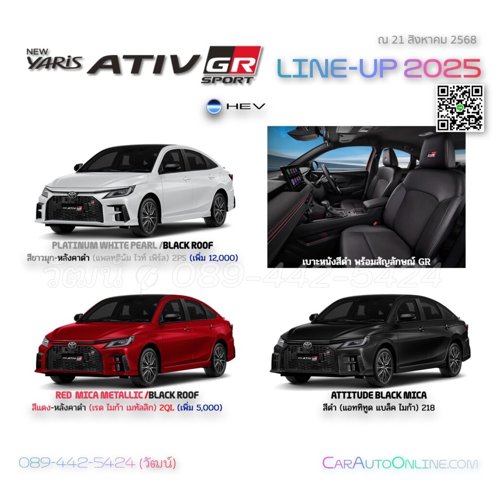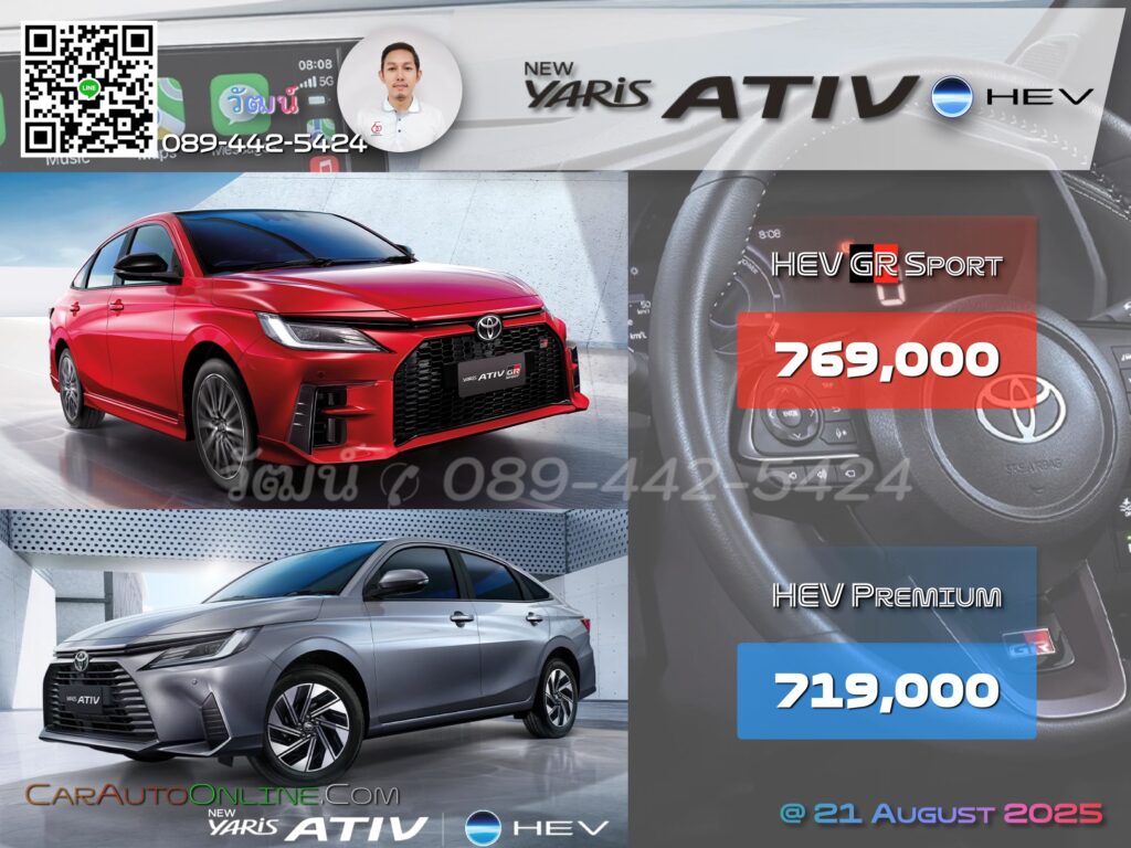 โตโยต้า ยาริส เอทีฟ ไฮบริด 2025 (4 ประตู) ราคา ณ 21 สิงหาคม 2568 มีรายละเอียด ดังนี้