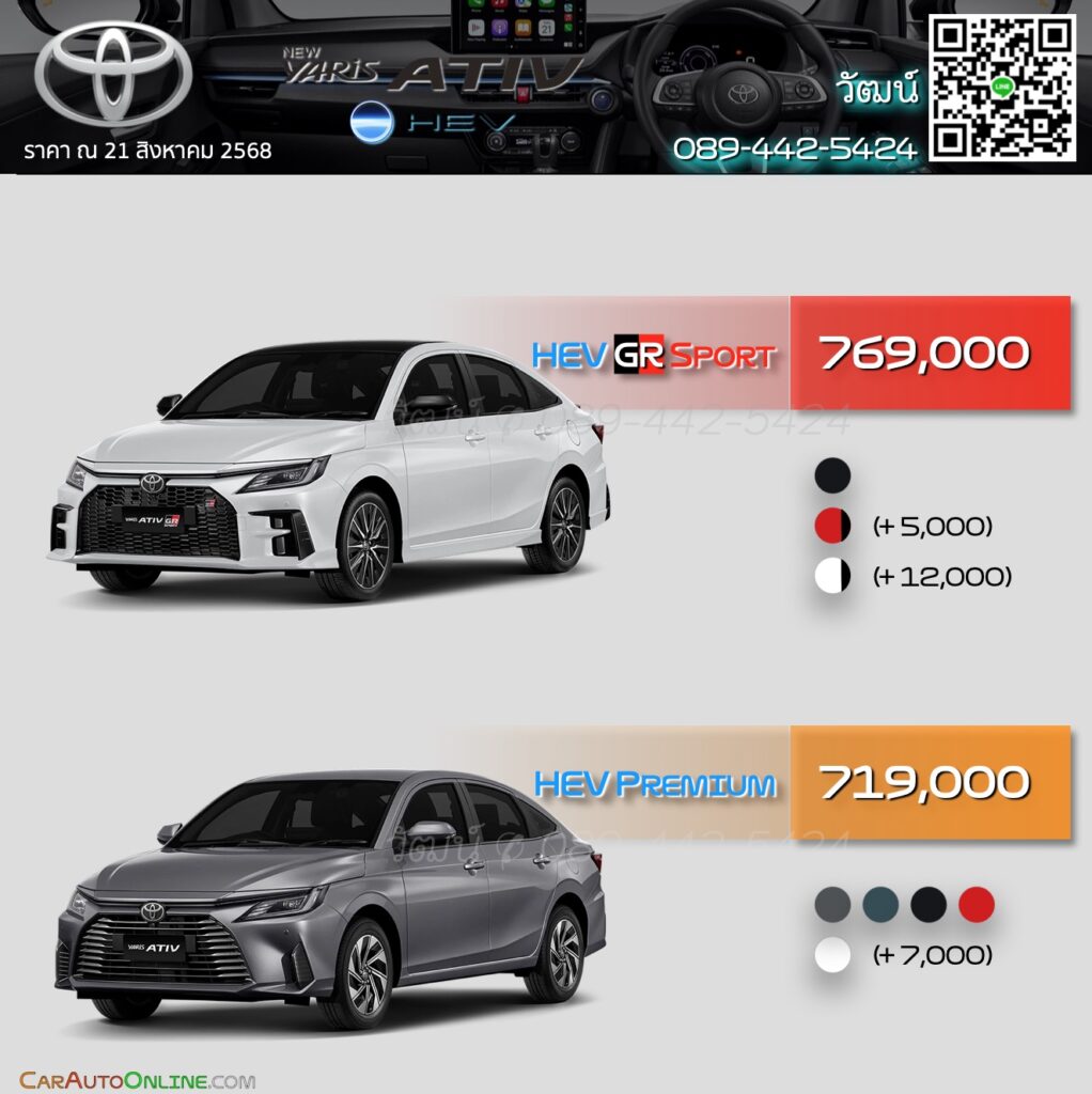 1.5 HEV GR SPORT 769,000 บาท สิ่งที่เพิ่มขึ้นจากรุ่น HEV Premium +50,000 บาท
