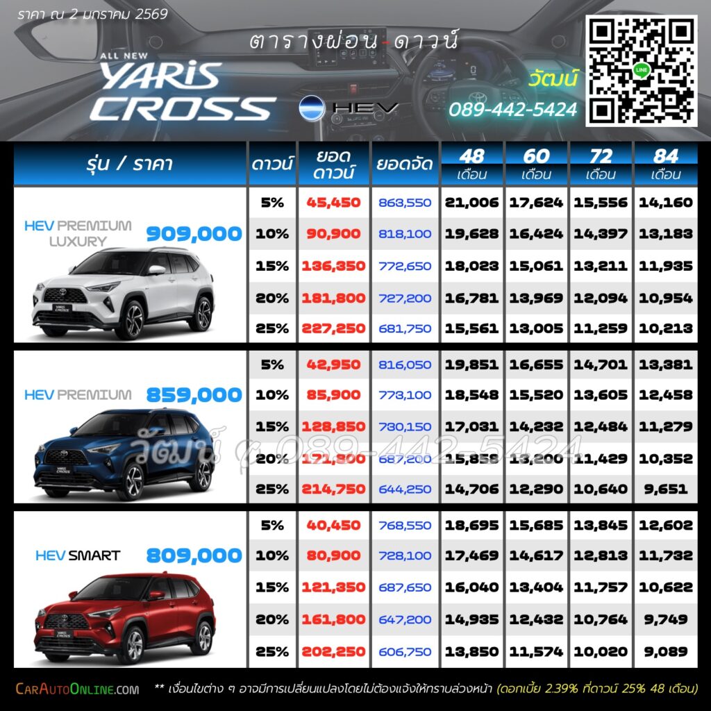 ตารางการผ่อนดาวน์ YARIS CROSS 2026 1.5 Hybrid