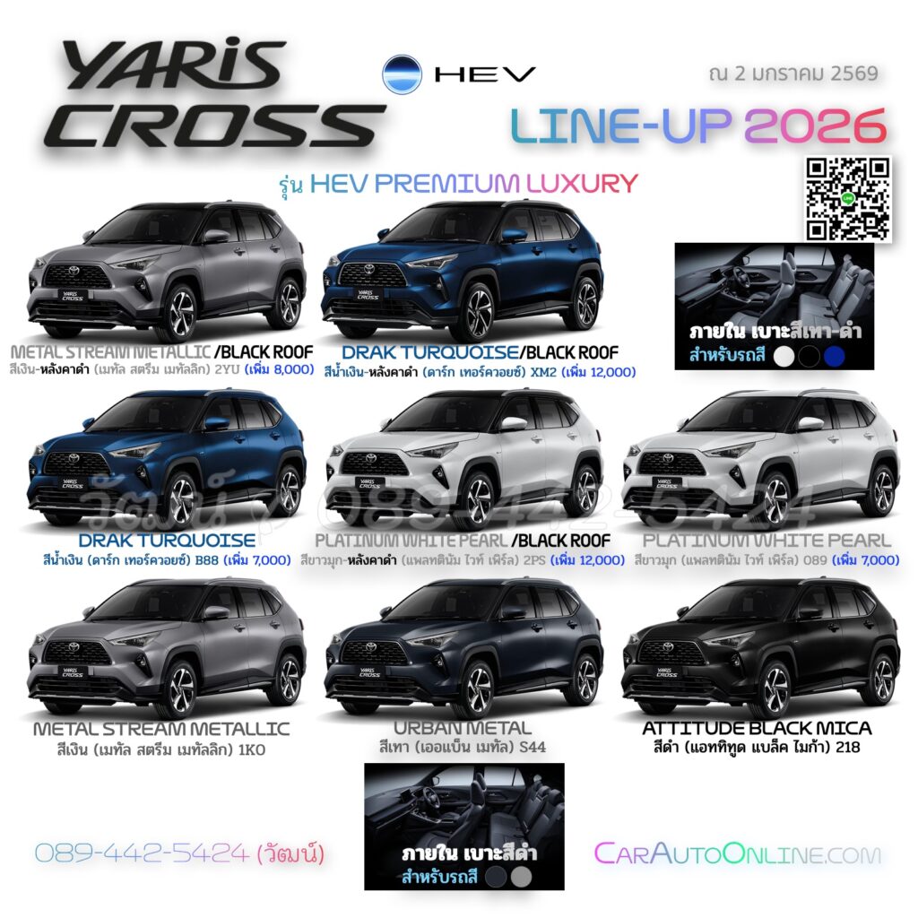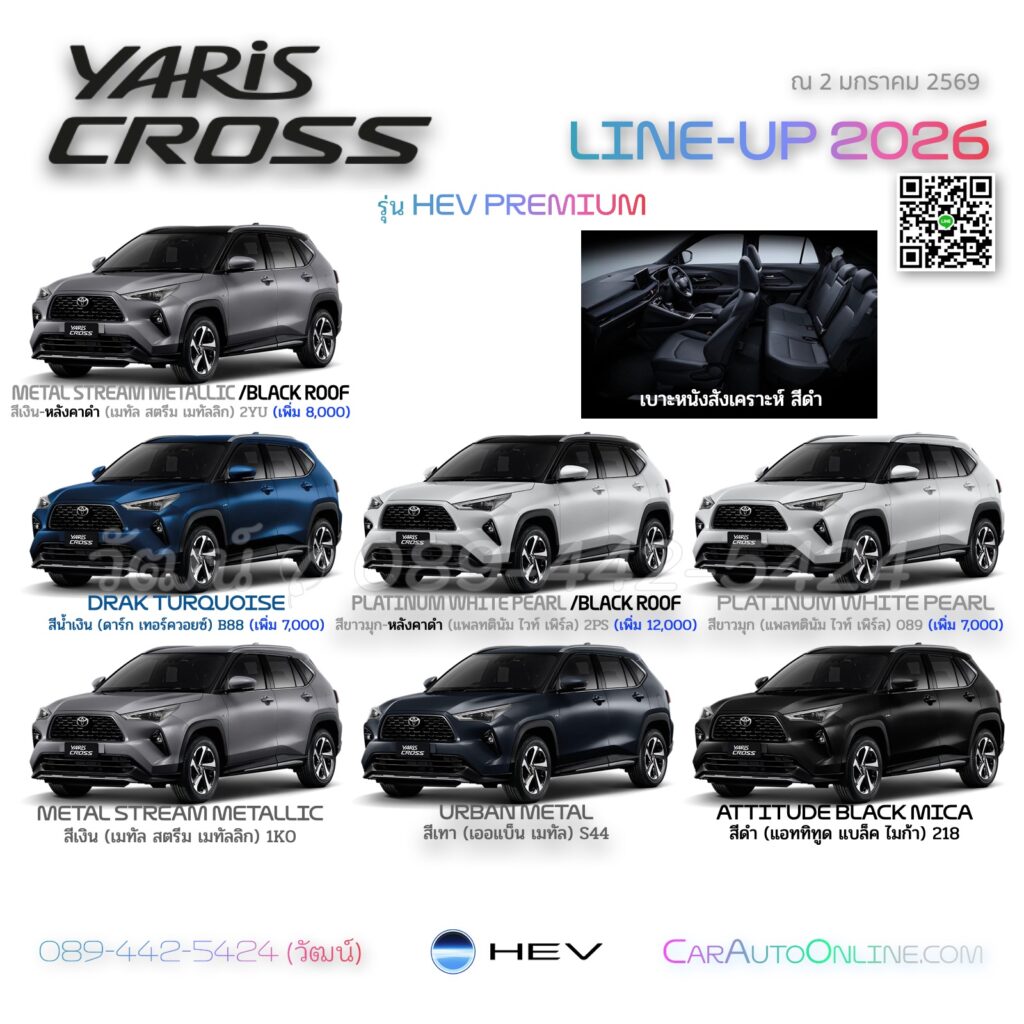 Toyota Yaris CROSS 2026 HEV ราคา ณ  2 มกราคม 2569 มีรายละเอียดดังนี้